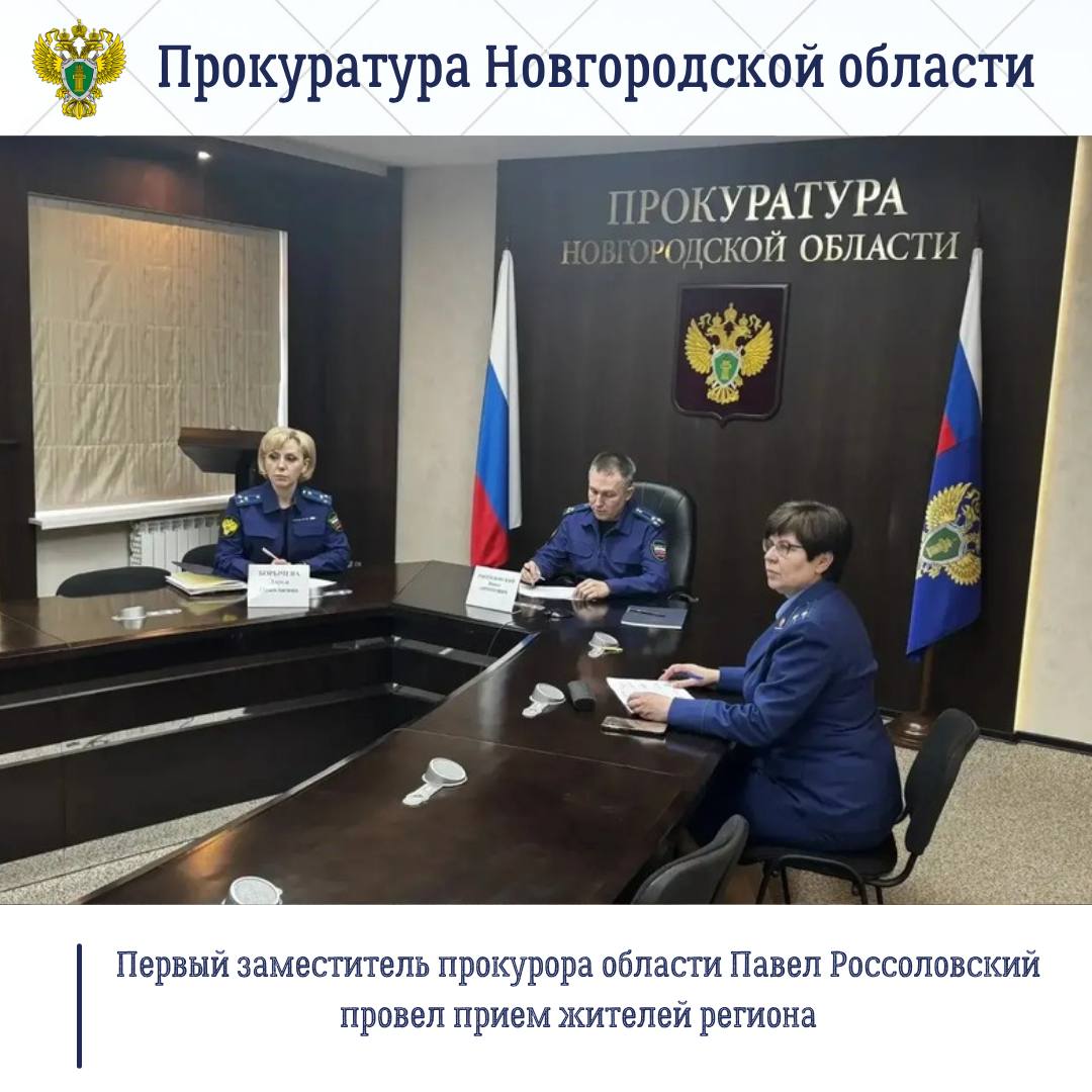 Сегодня, 25 марта 2026 года, в региональной прокуратуре (г. Великий Новгород, ул. Новолучанская, д. 11) в режиме видео-конференц-связи первый заместитель прокурора области Павел Россоловский провел прием жителей региона.