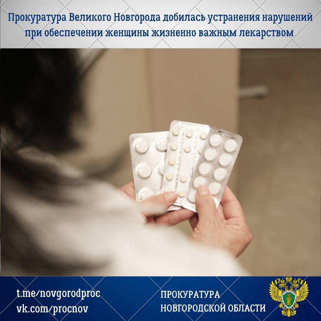 Прокуратура Великого Новгорода по обращению местной жительницы провела проверку о нарушении ее прав на обеспечение лекарственным препаратом.