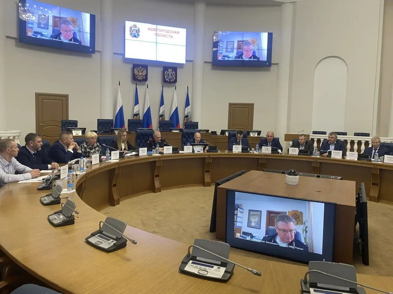 Заместитель руководителя российской Госавтоинспекции Олег Понарьин в режиме видеоконференцсвязи принял участие в заседании комиссии по обеспечению безопасности дорожного движения Новгородской области