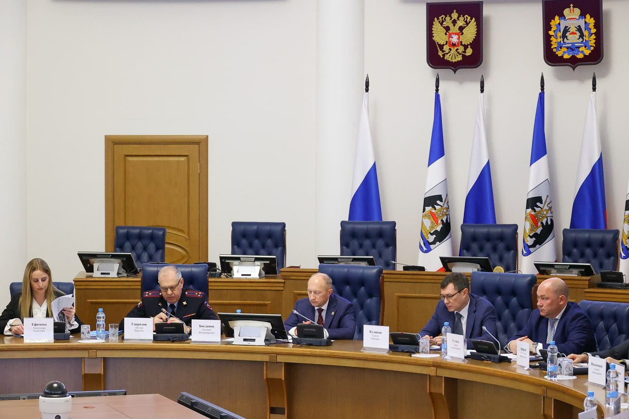 Заседание прошло сегодня в Большом зале Правительства Новгородской области под председательством первого заместителя губернатора региона Евгения Богданова.