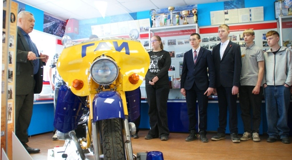Стены музейной комнаты новгородской Госавтоинспекции погрузили молодых людей, проходящих обучение водительским навыкам в детской юношеской автомобильной школе, и их руководителя в историю становления службы и знаковые события 90-летнего развития ведомства.