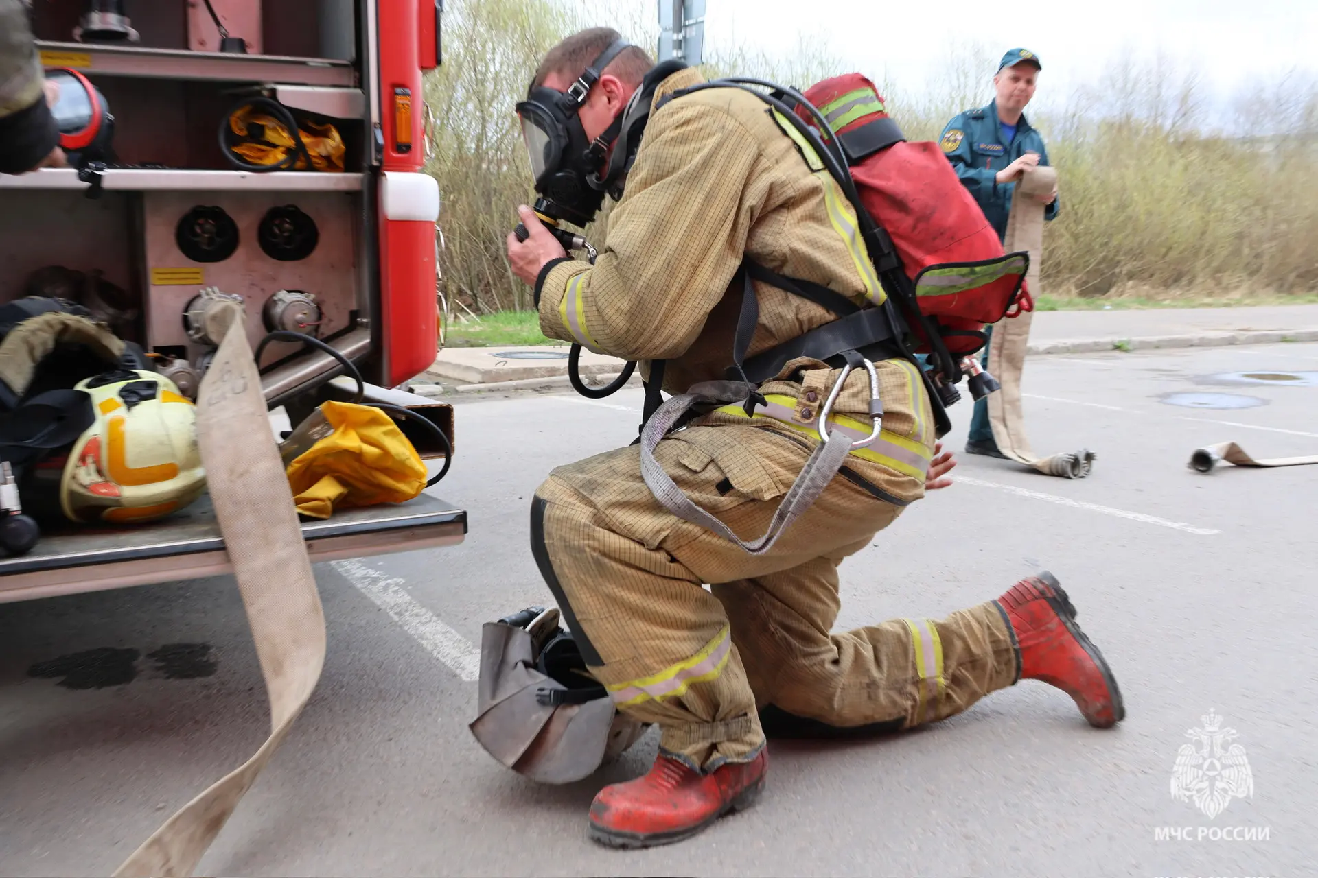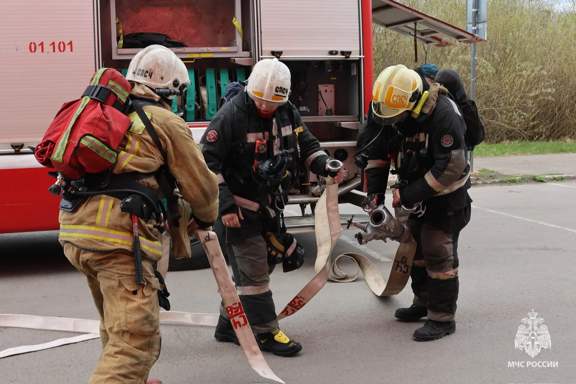 Прибывшие пожарно-спасательные подразделения, звеном газодымозащитной службы провели разведку. С помощью спасательных устройств «пострадавшие» были выведены на свежий воздух и переданы фельдшеру специализированной пожарно-спасательной части. Очаг возгорания был обнаружен. Условный пожар ликвидирован.
