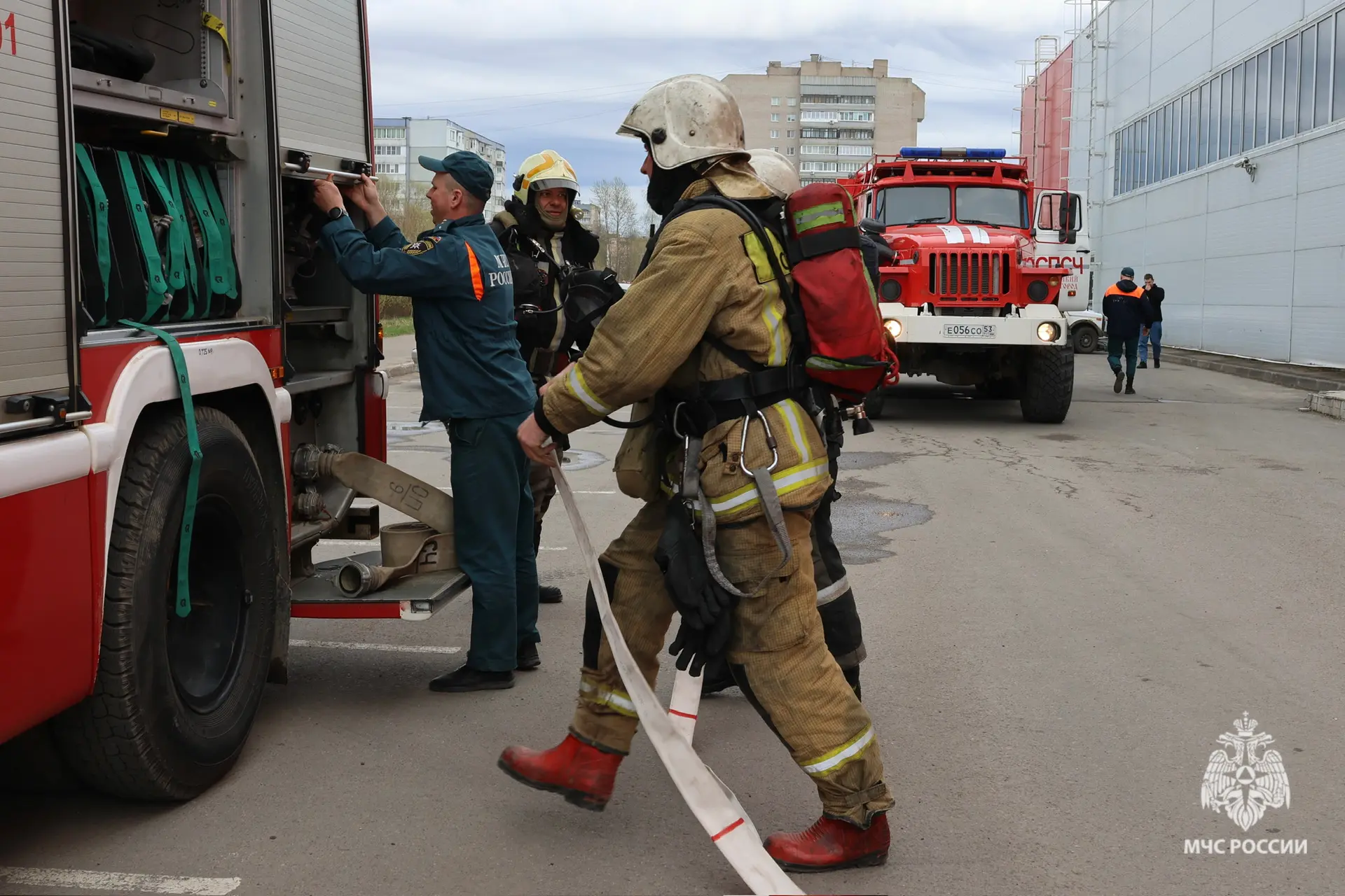 В магазине «Магнит» в Великом Новгороде прошло пожарно-тактическое учение. По замыслу, в помещении пресс-картона на 1 этаже произошло возгорание. Администрация объекта оперативно организовала эвакуацию персонала и покупателей при срабатывании пожарной сигнализации. Однако 2 человека оказались «отрезаны огнём» и не смогли покинуть помещение самостоятельно.
