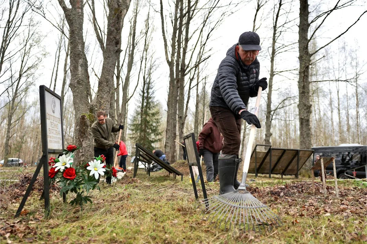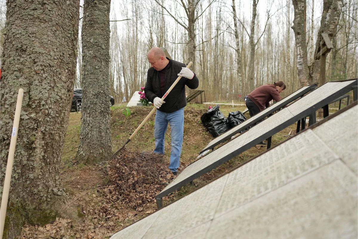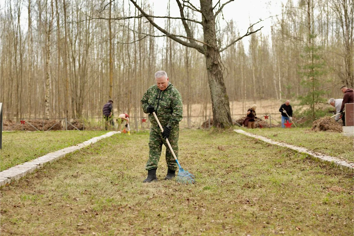 По традиции депутаты и сотрудники аппарата Новгородской областной Думы навели порядок на братском захоронении