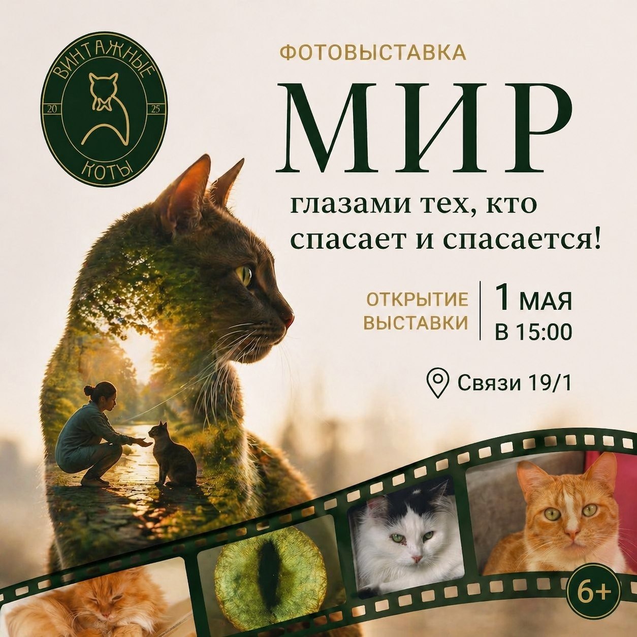 В пятницу, 1 мая, в Великом Новгороде в арт-пространстве «Винтажные Коты» состоится открытие уникальной фотовыставки «Мир глазами тех, кто спасает и спасается!», организатором которой выступает новгородская некоммерческая организация «Кошкин Дом».