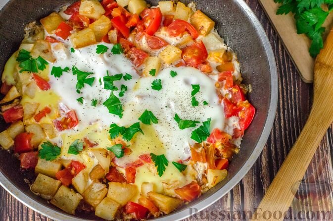 Яичница с картофелем и овощами