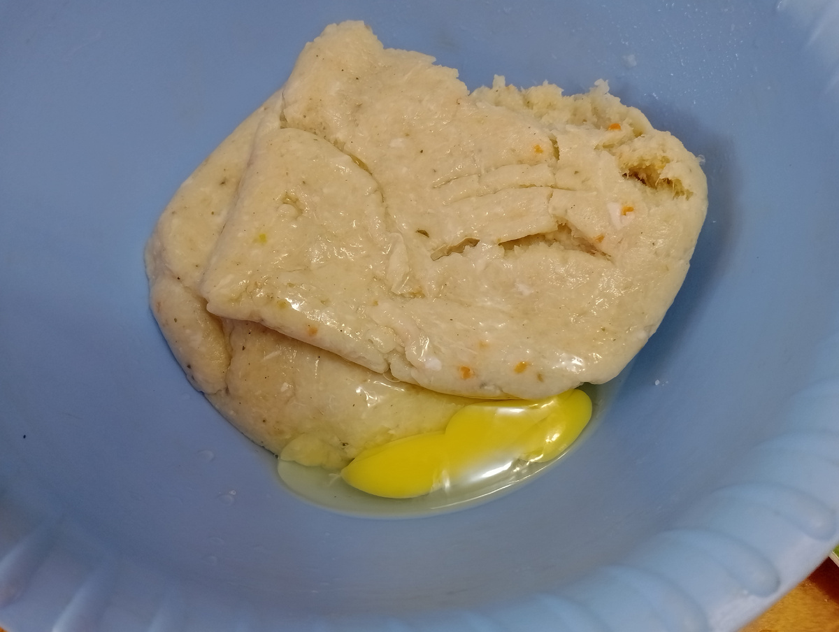 Для начала в рыбный фарш добавляется одно сырое яйцо, затем все тщательно перемешивается. Следующий шаг — приправить полученную массу солью и перцем по вкусу.