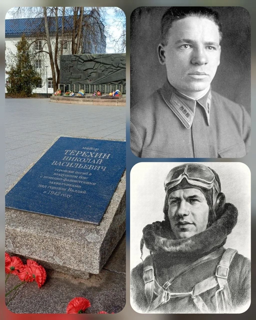 Прах лётчика Николай Терёхин покоится в Сквере Героев города Валдай Новгородской области. Он погиб 30 декабря 1942 года в воздушном сражении над Новгородской областью. Об этом в своих соцсетях рассказал глава Валдайского округа Юрий Стадэ.