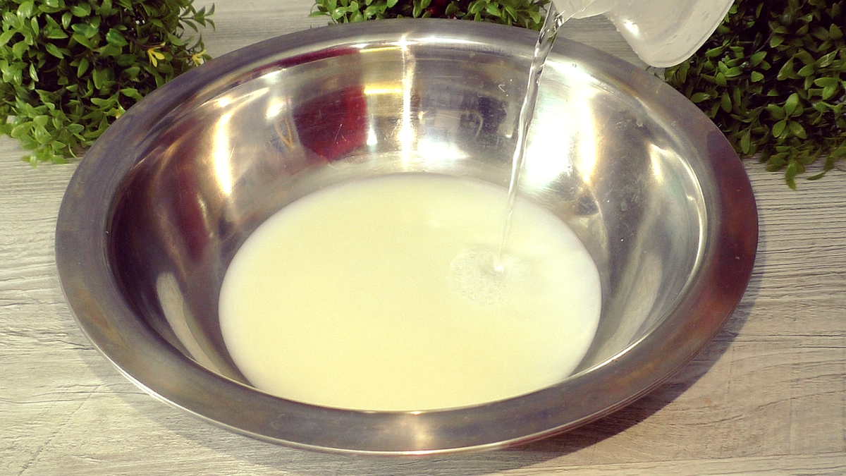 Для начала нужно смешать теплое молоко с теплой водой, хорошим вариантом является комбинация холодного молока с горячей водой. Главное, чтобы температура получившейся жидкости была около 30 градусов.