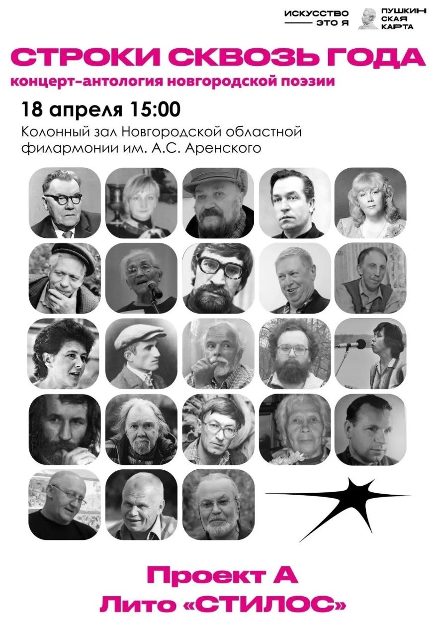 18 апреля в 15:00 в Новгородской областной филармонии имени Аренского пройдет итоговый концерт-антология новгородской поэзии «Строки сквозь года».