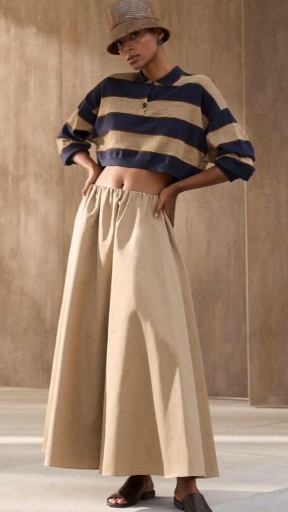 Укороченные топы уже не просто элемент пляжного или спортивного гардероба. Дизайнеры продемонстрировали, что они могут стать неотъемлемой частью элегантных нарядов. Например, коллекции Brunello Cucinelli показывают, как кроп-топ можно сочетать с классическим жакетом или многослойными образами.