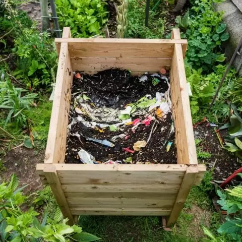 Теперь о том, как заполнять компостер. Можно и нужно добавлять скошенную траву, опавшие листья, ботву овощей, выполотые сорняки, древесную золу, опилки и все кухонные остатки растительного происхождения. Не следует использовать мясные, рыбные и молочные продукты, а также больные растения и синтетические материалы. Чтобы ускорить созревание компоста, периодически проливайте его растворами ЭМ-препаратов и перепахивайте содержимое секций для лучшей аэрации.