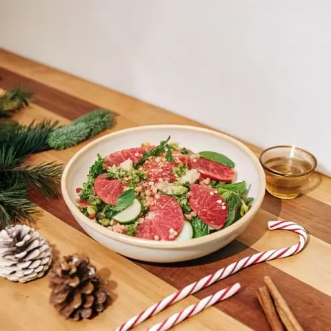 - Салат-детокс с киноа и цитрусовыми: Это легкое и питательное блюдо сочетает в себе киноа, свежие овощи и цитрусовые фрукты. Оно не только насыщает, но и наполняет организм витаминами.