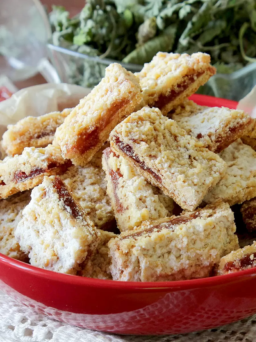 Нарезайте и подавайте. Дайте печенью немного остыть перед нарезкой на кусочки. Для особого удобства можно присыпать их сахарной пудрой.