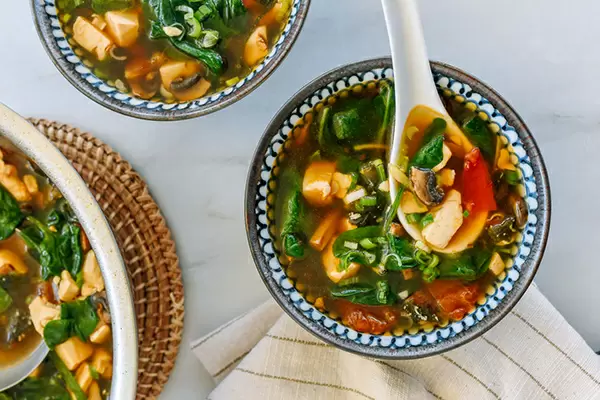 Восточная кулинария известна своей способностью создавать гармонию инь и ян. Суп не просто первое блюдо, а полноценный инструмент для восстановления жизненного баланса. Он собирает в себе все тонкости восточной кулинарии: от нежного тофу до ароматных грибов и хрустящих водорослей вакаме. Каждый ингредиент выбран так, чтобы мягко обойтись с организмом: он не обещает внезапного очищения, но будет верным союзником в пути к благополучию.