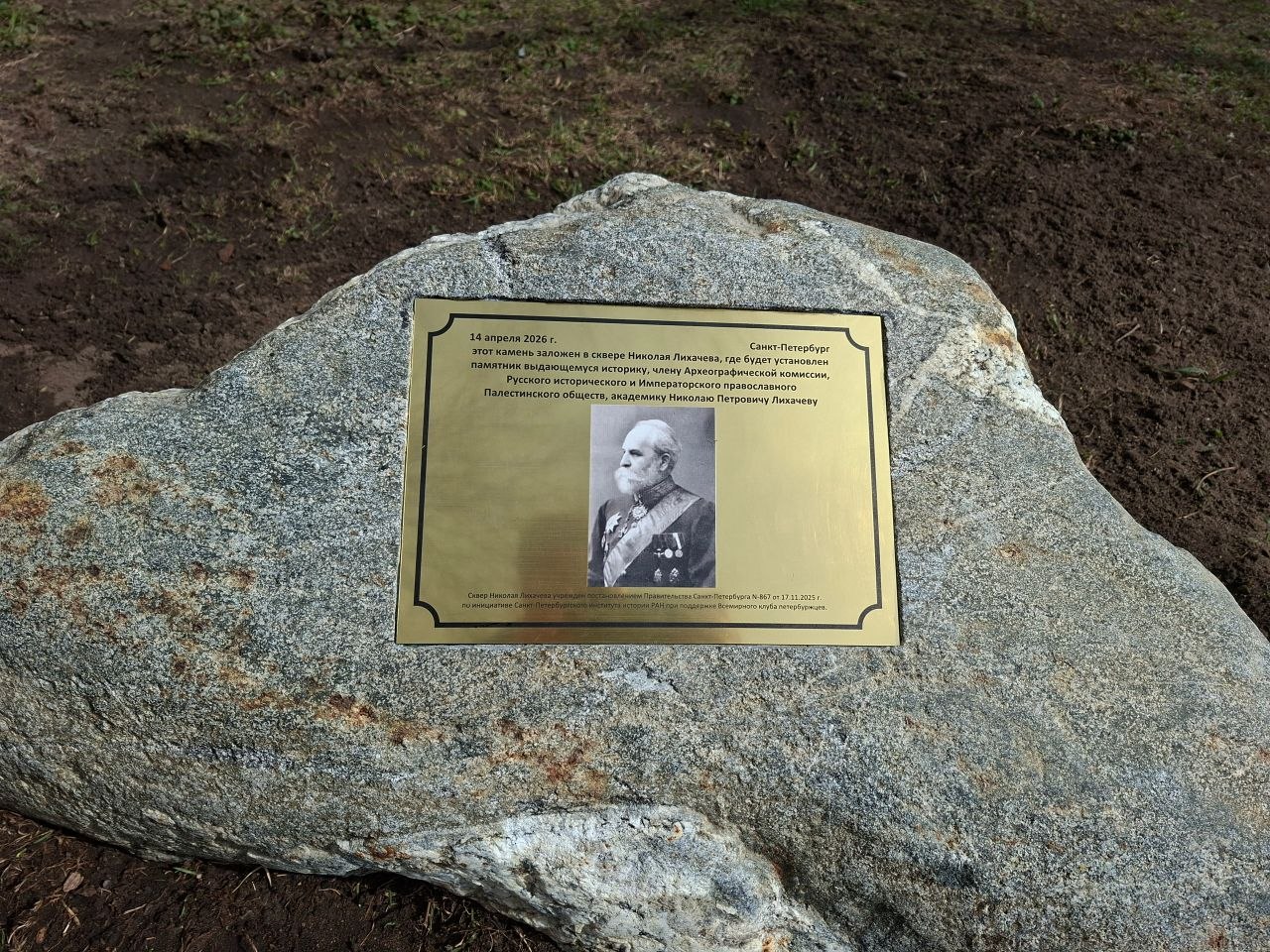 В честь этого события вчера, 14 апреля, рядом со зданием СПб Института истории РАН в сквере имени Николая Лихачева в Санкт-Петербурге прошло торжественное открытие закладного камня на месте будущего памятника ученому.