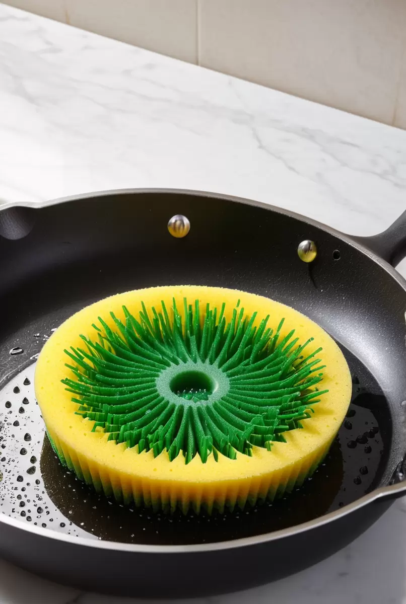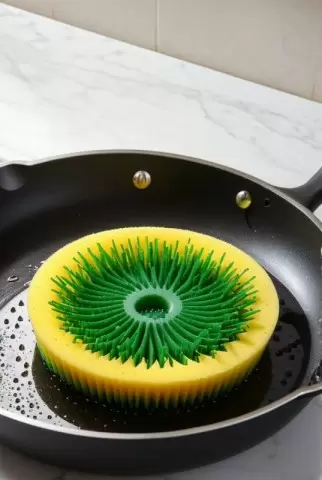 - Берегите свою посуду: Гибкие щетинки губок эффективно удаляют загрязнения, не царапая антипригарные покрытия сковород и кастрюль.