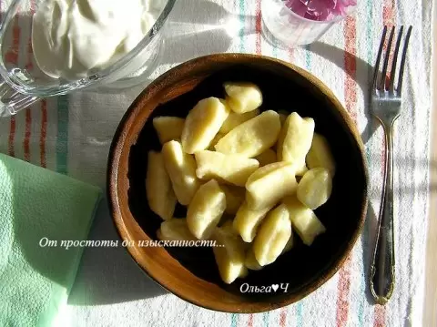 После этого тесто делится на две равные части. Из каждой из них сформируйте жгуты, которые затем нарезаются маленькими кусочками.