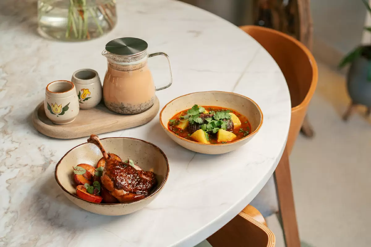 Три блюда, которые ближе к домашнему столу, помогают почувствовать характер кухни: наваристая шурпа из конины и картофеля, запеченная утиная ножка с медовыми и фруктовыми нотами, и крепкий чай с травами, завершающий трапезу.