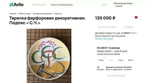 В начале января текущего года на платформе Авито попалась на глаза декоративная тарелка с ценой в 120 тысяч рублей. Ее объявление привлекло внимание, и было сохранено в Избранное для последующего мониторинга. К сожалению, к февралю объявление исчезло, оставив лишь цифровой след в виде сохраненных фотографий.