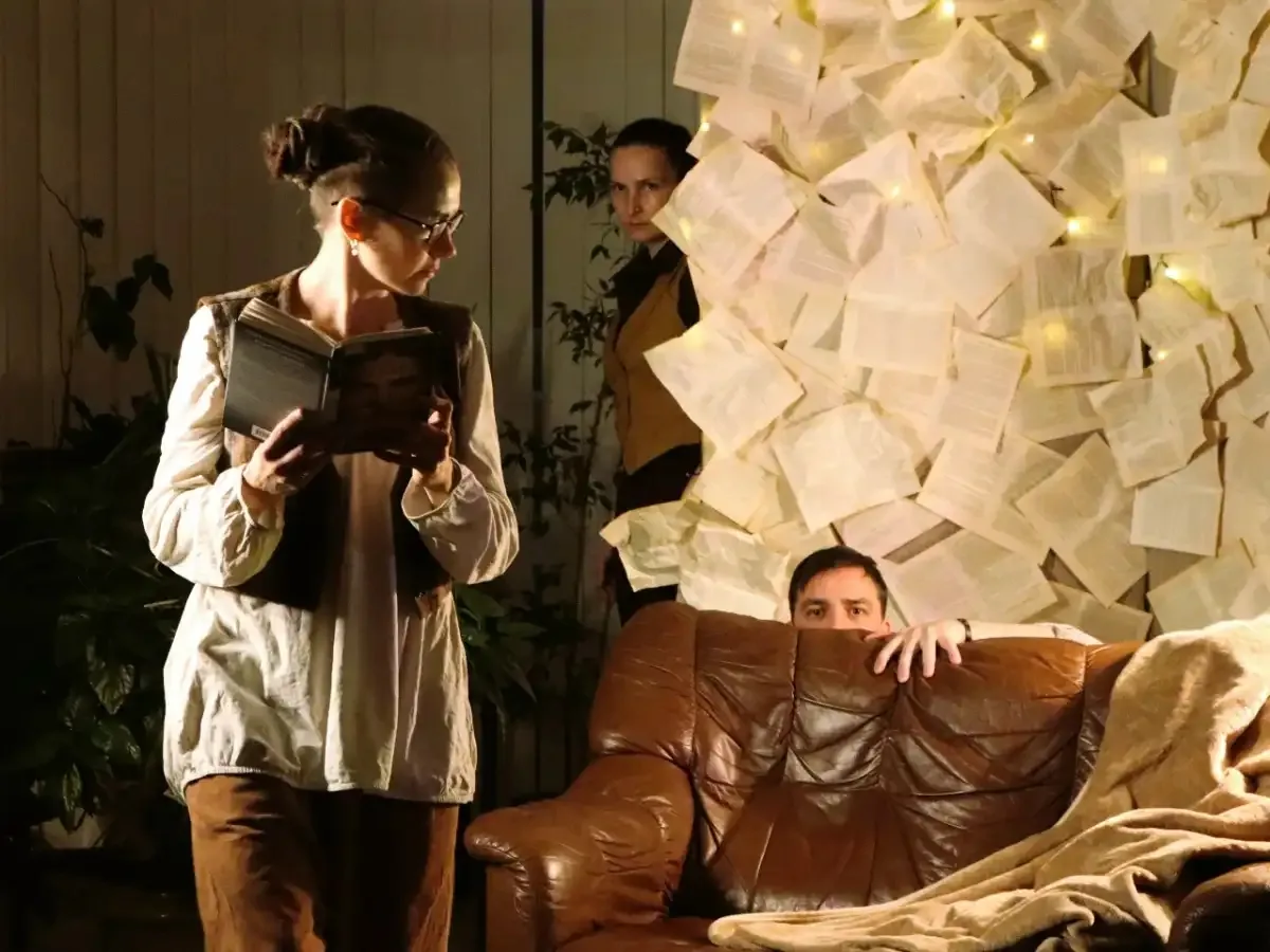 Одним из самых ярких событий «Библионочи» за всю истории акции в Великом Новгороде стала премьера перформанса «За текстом» от городской мастерской движения «Тло». Она прошла 17 апреля в библиотеке «Читай-город».