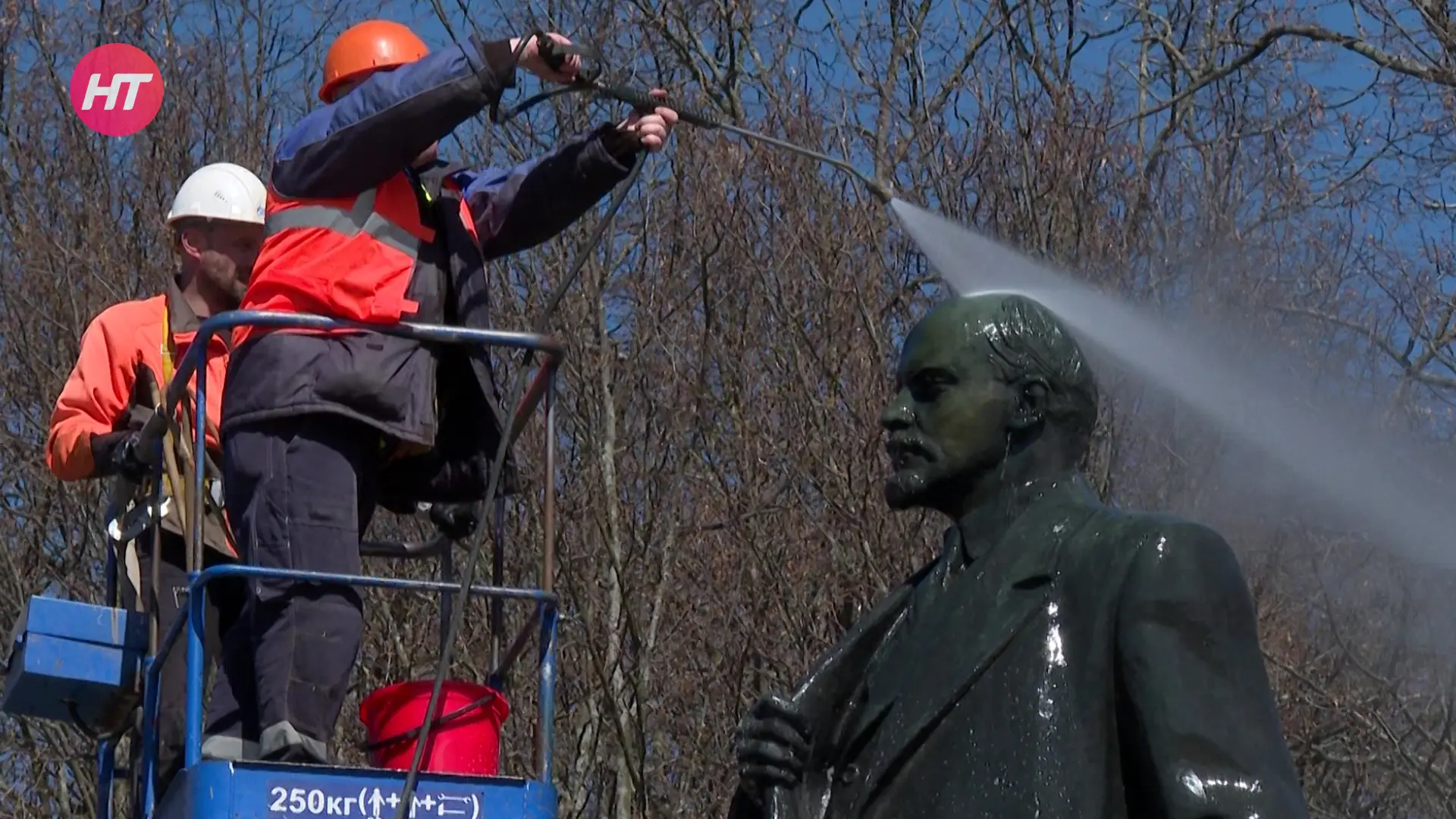 Накануне дня рождения вождя революции «Городское хозяйство» и «Парки Великого Новгорода» начали приводить в порядок памятники, установленные на Дворцовой улице и Софийской площади.