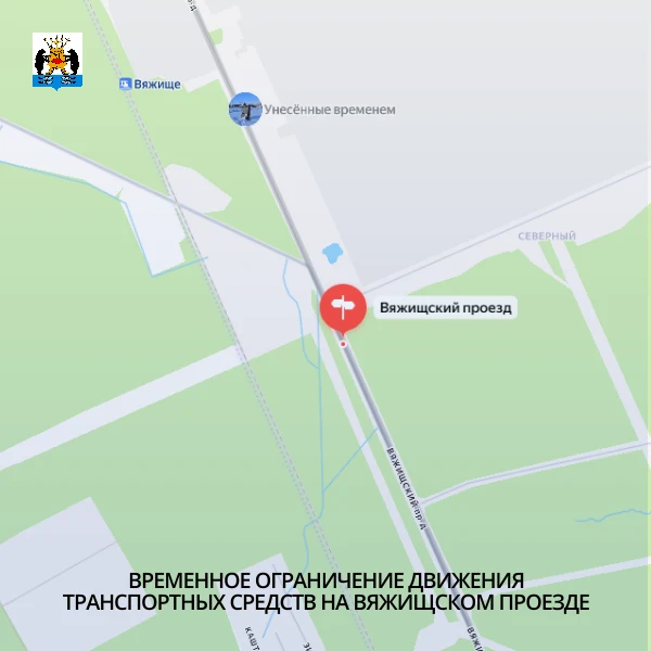 Внимание С 24 апреля по 1 сентября будет временно ограничено движение автотранспорта на Вяжищском проезде