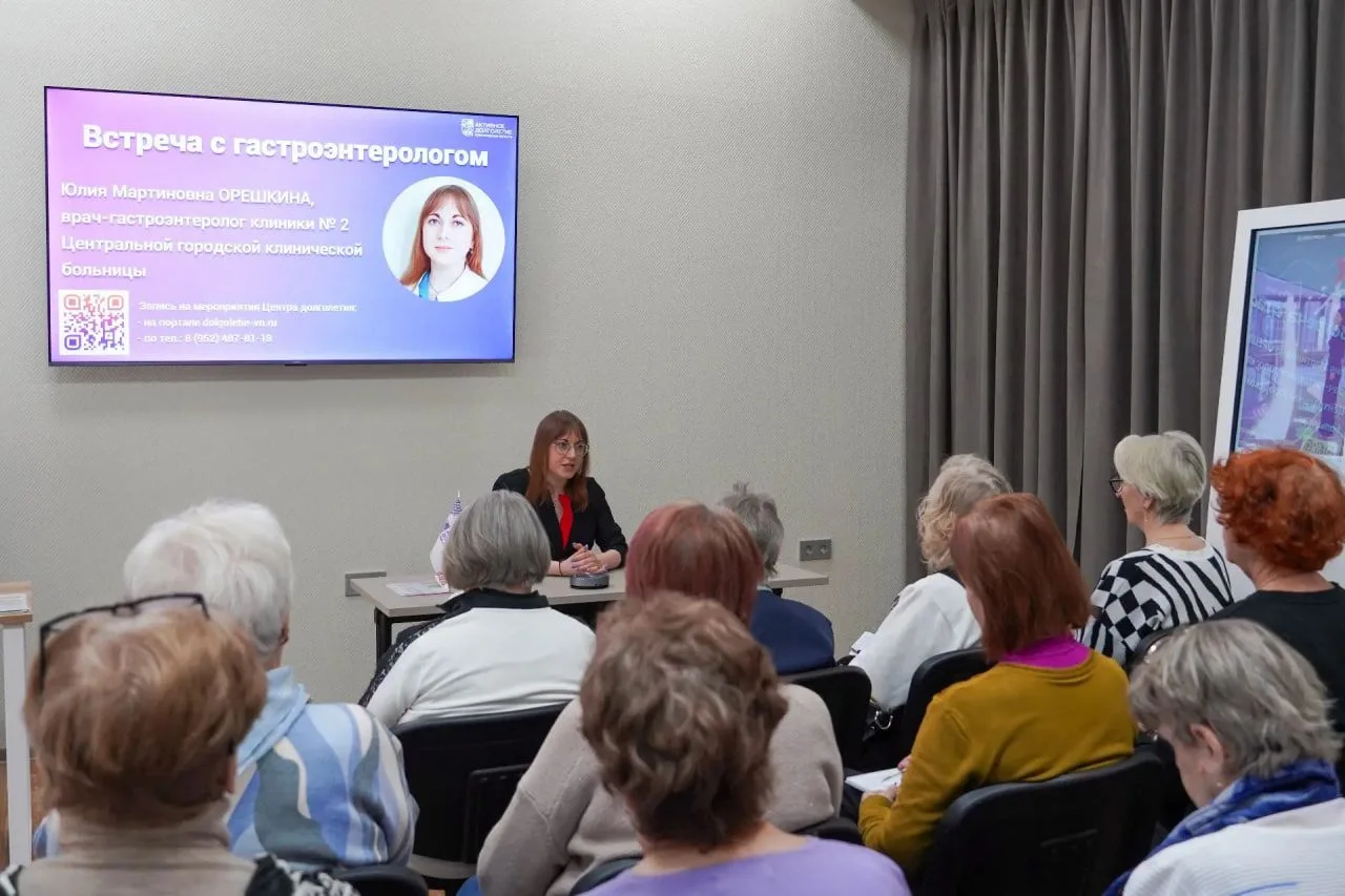 На встрече обсудили самые частые гастроэнтерологические проблемы у людей старшего возраста: как правильно реагировать на тревожные симптомы, почему так важен питьевой режим и сбалансированное питание, важность регулярной проверки здоровья.