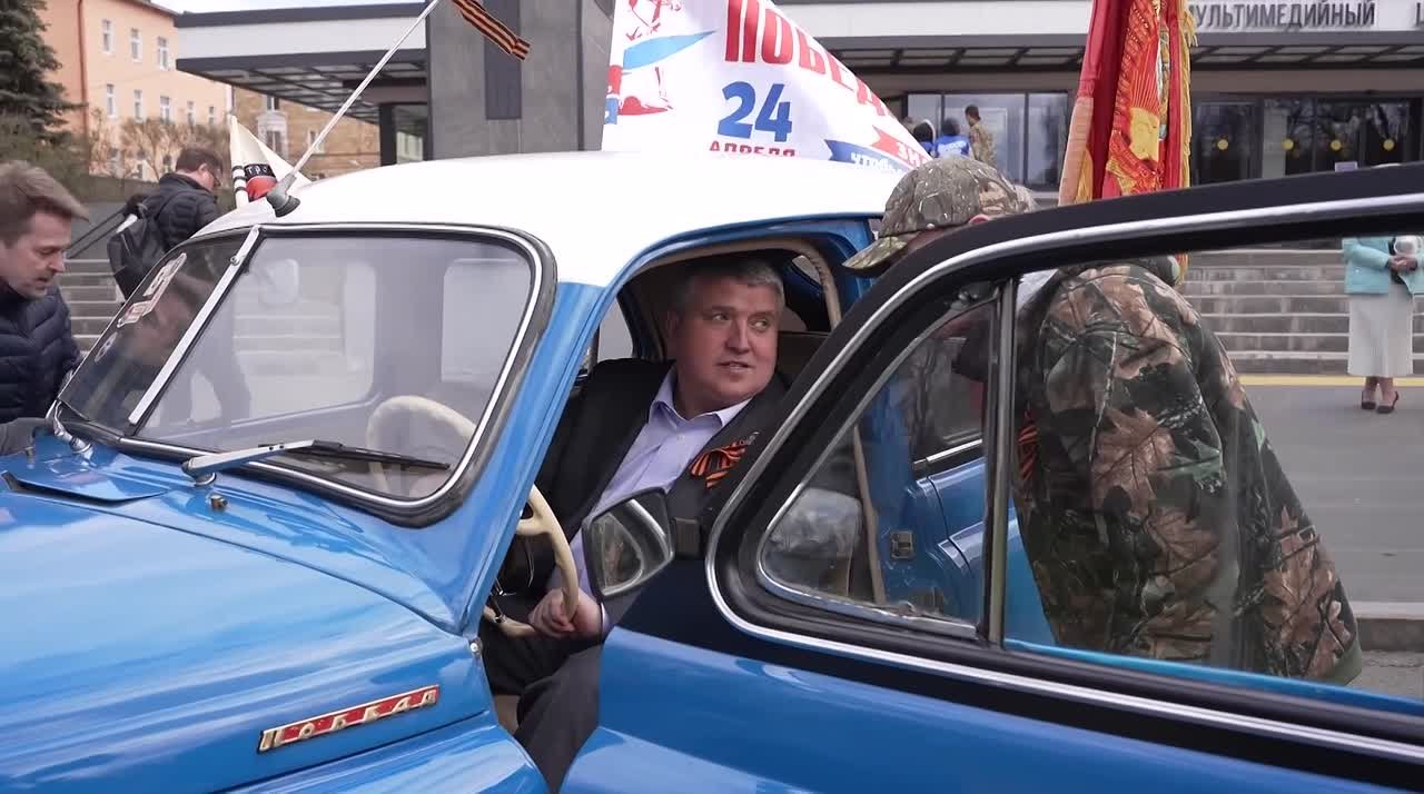 У мультимедийного центра «Россия» глава региона встретился с владельцами ретроавтомобилей. Автопробег объединил участников в честь 81-й годовщины Великой Победы и в преддверии акции «Диктант Победы». Инициатором мероприятия выступила партия «Единая Россия».
