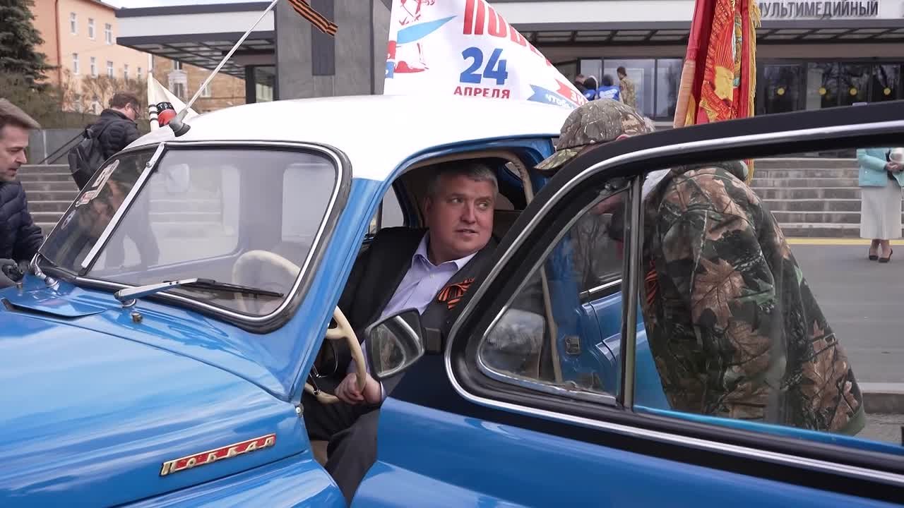 «У мультимедийного центра «Россия» пообщался с владельцами ретроавтомобилей. Сегодня их объединил автопробег в честь 81-й годовщины Великой Победы и в преддверии «Диктанта Победы». Организатором выступила партия «Единая Россия».