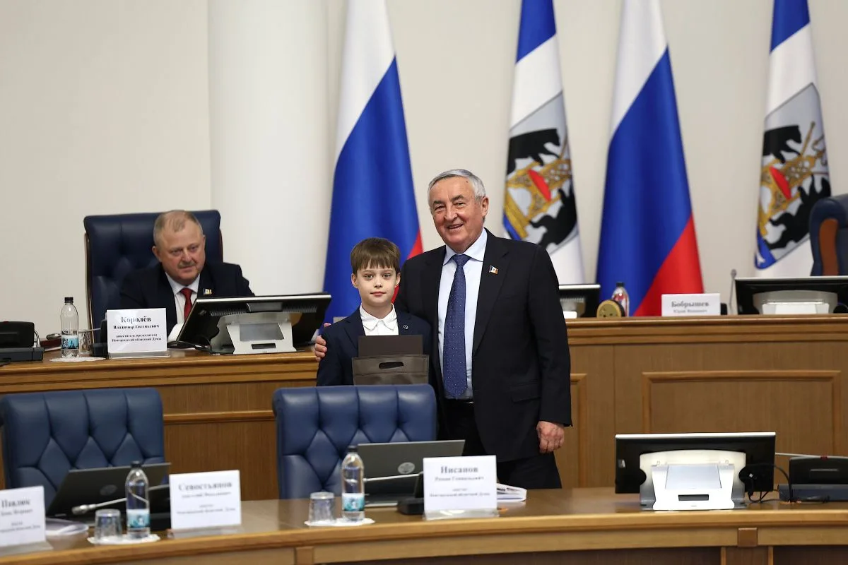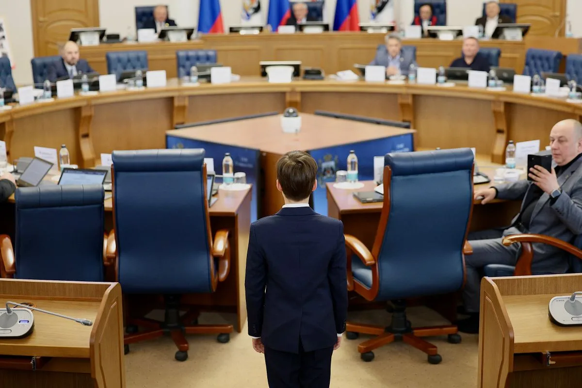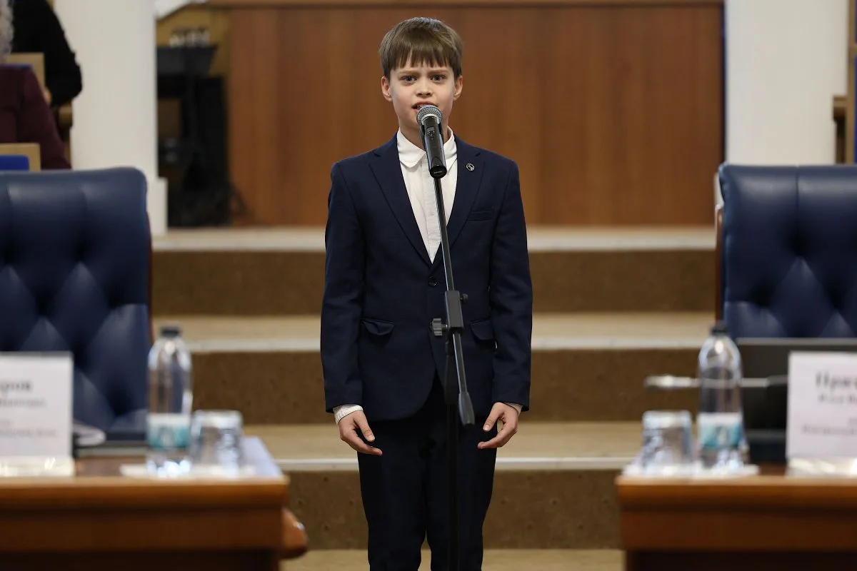 Перед депутатами выступил ученик школы №37, активист и участник «Движения Первых» Леонид Кваша. Он прочитал стихотворения «Баллада о матери» Ольги Киевской и «Мы говорили с мамой о войне» Степана Кадашникова.