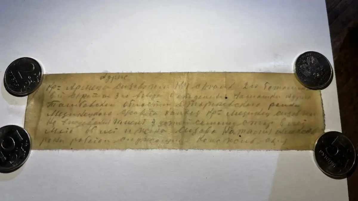Вчера участники отряда обнаружили здесь шесть смертных медальонов. Один солдатский медальон удалось прочитать на месте. В нём поисковики нашли нестандартную записку.