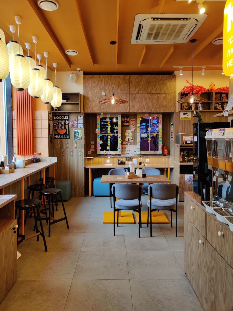 Выбор лапши — здесь настоящий кулинарный рай с множеством вариантов, среди которых можно легко заблудиться. Путь к обеду занимает всего 10 минут: путешественники выбирают свои любимые топинги, заказывают на специальной станции, и все, что остается — это наслаждаться горячим блюдами.