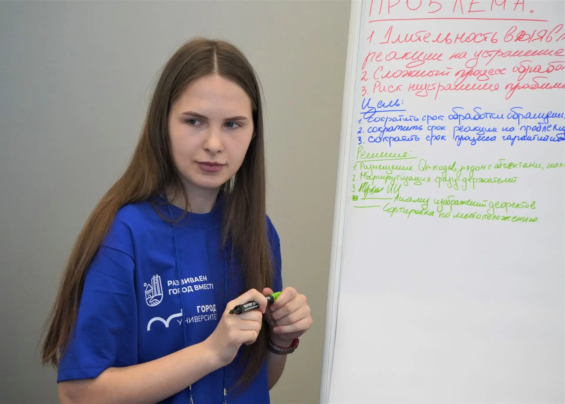 Перед студентами стояла серьёзная задача. Они должны были проанализировать проблемные вопросы, найти эффективные решения и представить свои проекты экспертной комиссии, в которую вошли заместитель губернатора Оксана Белокрылова, заместитель главы Администрации Мария Дорошенкова, проректор по образовательной деятельности НовГУ Андрей Ефременков, руководитель проектно-учебного центра «Производительность труда» Мария Желнина и руководитель проекта АО «ПСР» ГК «Росатом» Олег Статуев.